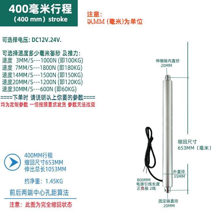 Iron beetle series-c3-400mm stroke electric push rod