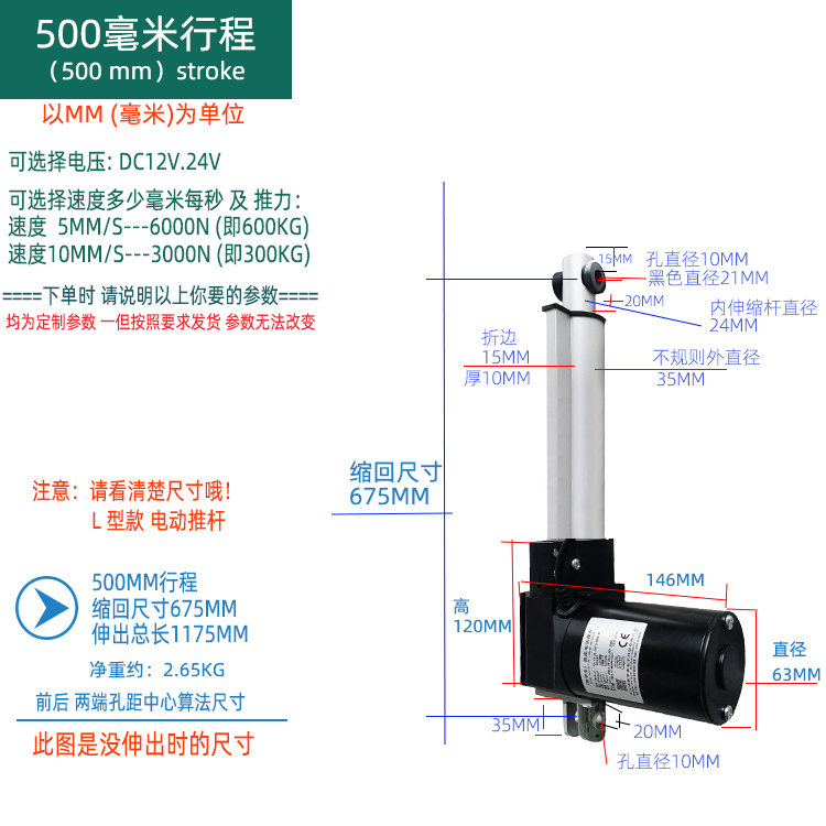 Iron beetle L series-c4-500mm stroke electric push rod