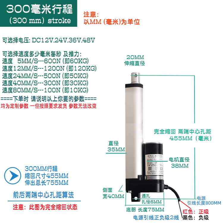 Iron beetle h series-c1-300mm stroke electric push rod