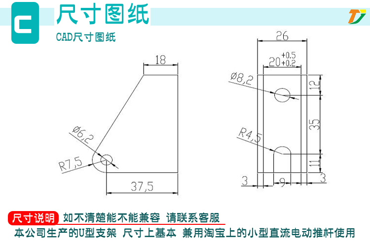 电动推杆U型固定支架 直流推杆电机小型推拉升降器 微型电动伸缩杆安装座