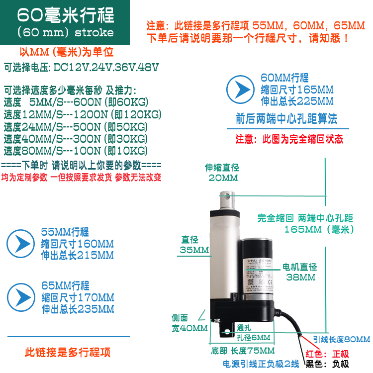 铁甲虫电动推杆 12v24伏 60MM 微型直流推杆电机推拉杆伸缩电动开窗器