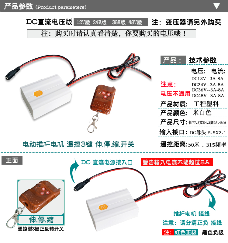 铁甲虫-电动推杆遥控器DC24V12V直流推杆电机 伸缩杆升降开窗器控制器